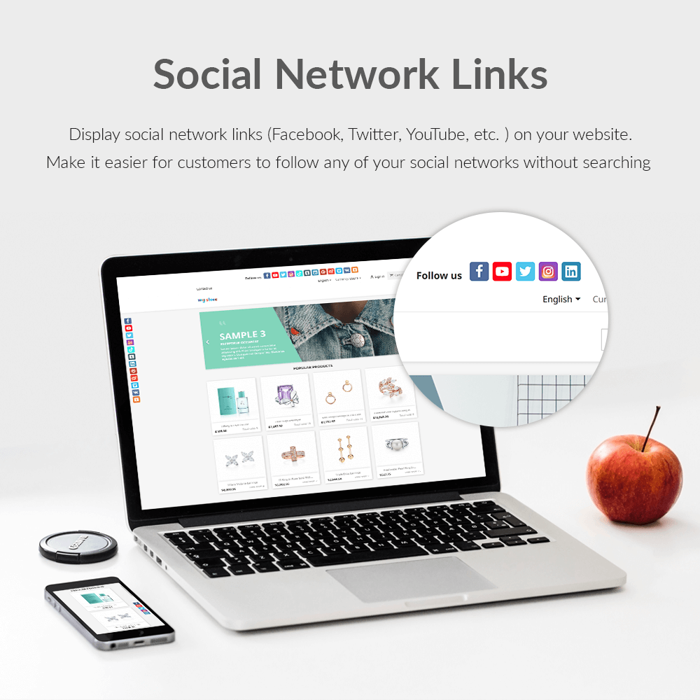 Display social network links such as Facebook, Twitter, Youtube, Instagram, etc on your store website. Make it easier for customers to follow any of your social networks without searching.