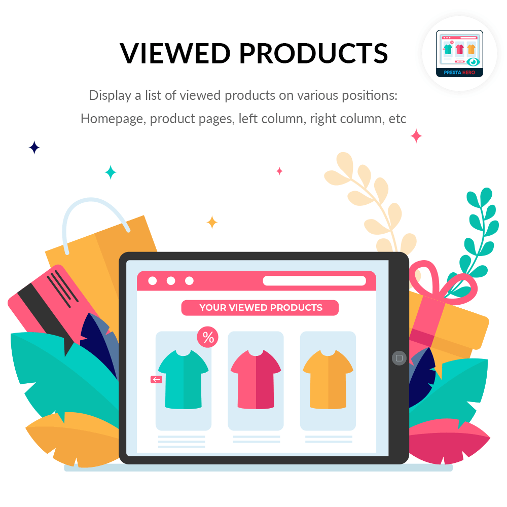 Viewed Products is a free PrestaShop viewed products module that allows you to display a list of viewed products on various positions: Homepage, product pages, left column, right column, etc. The product list is saved for logged-in customers.