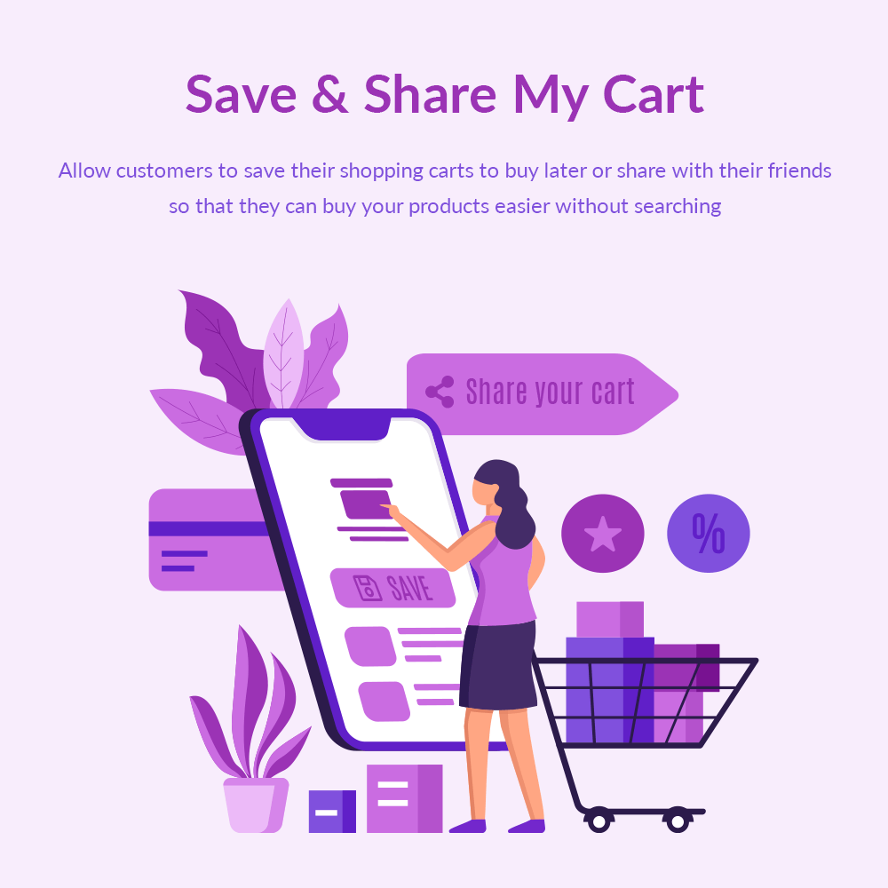 Save My Cart is a PrestaShop save cart free module that allows customers to save their shopping carts to buy later or share them with their friends so that they can buy your store products easier without searching.